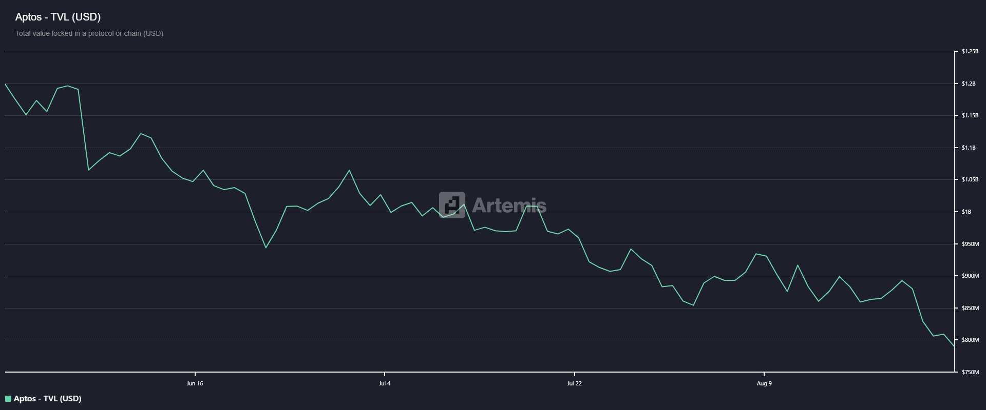Graphique représentant l'évolution de la TVL de la blockchain Aptos