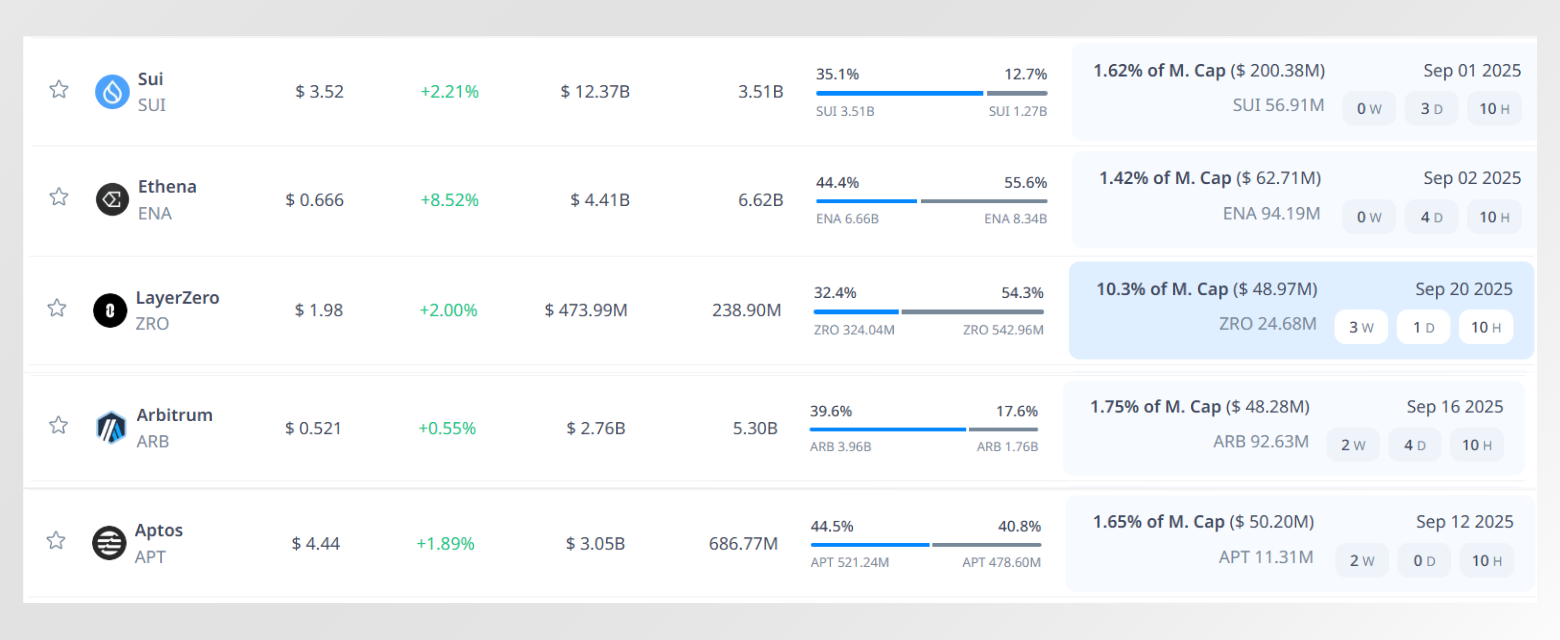 Parmi les autres unlocks importants à surveiller au mois de septembre, nous pouvons également citer :