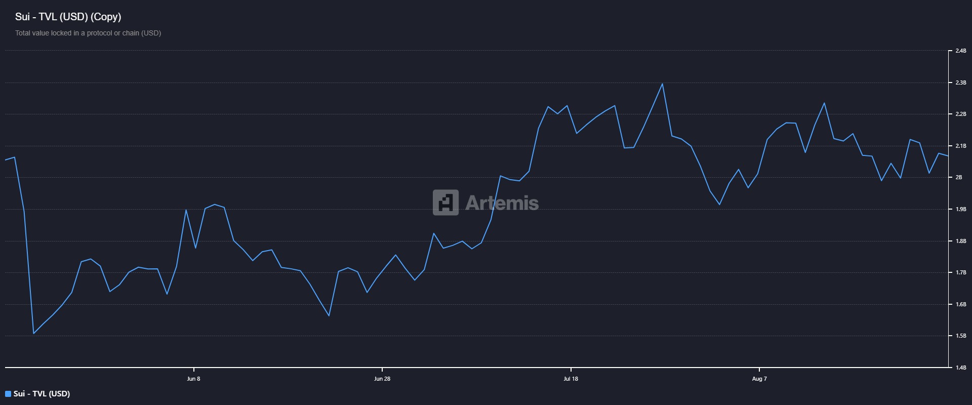 Graphique représentant l'évolution de la TVL de la blockchain Sui