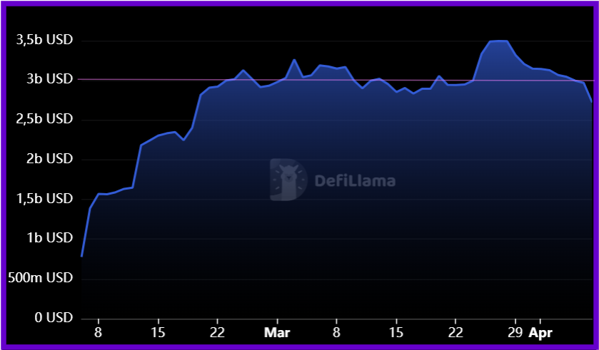 Seulement 1 mois après son lancement, Berachain peut se targuer d'avoir franchi le cap des 3 milliards de dollars de valeur totale verrouillée (TVL) :