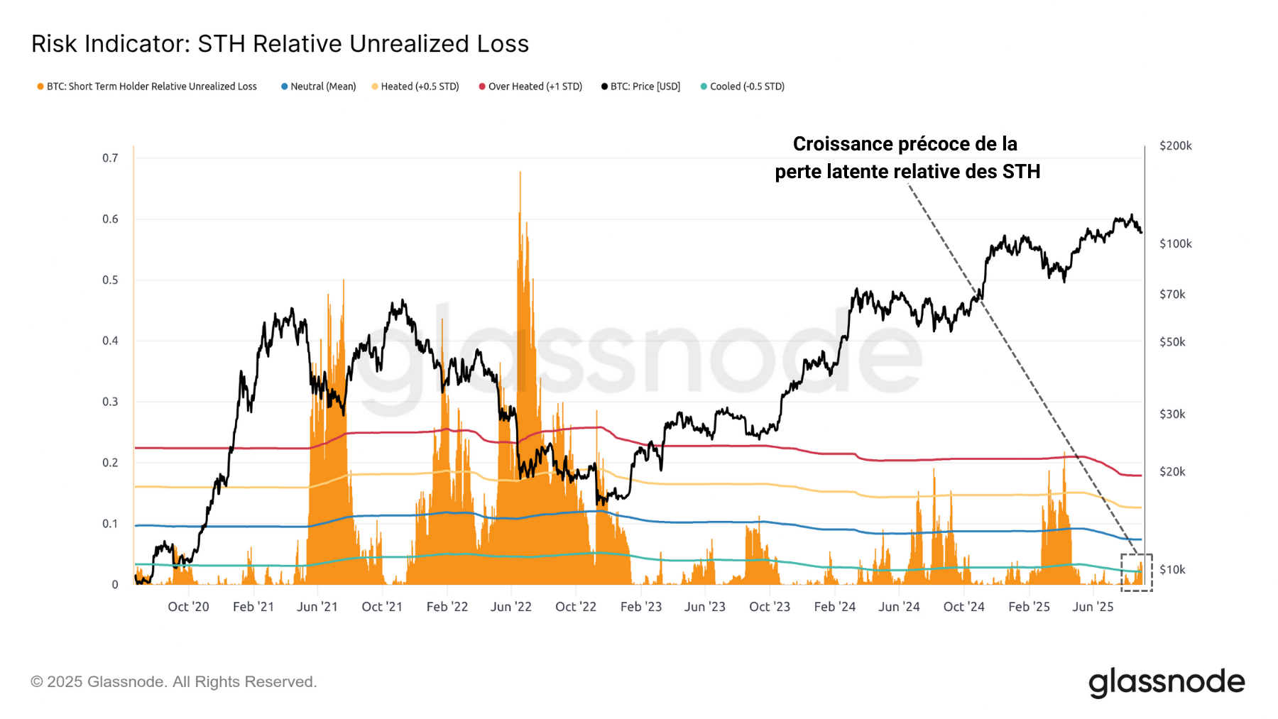 La mise en perspective de la perte latente des STH part rapport au cycle précédent indique un taux de douleur encore tolérable. Le marché signal une légère croissance de la perte latente des STH, signe d'une augmentation de la pression financière toutefois limitée pour le moment.