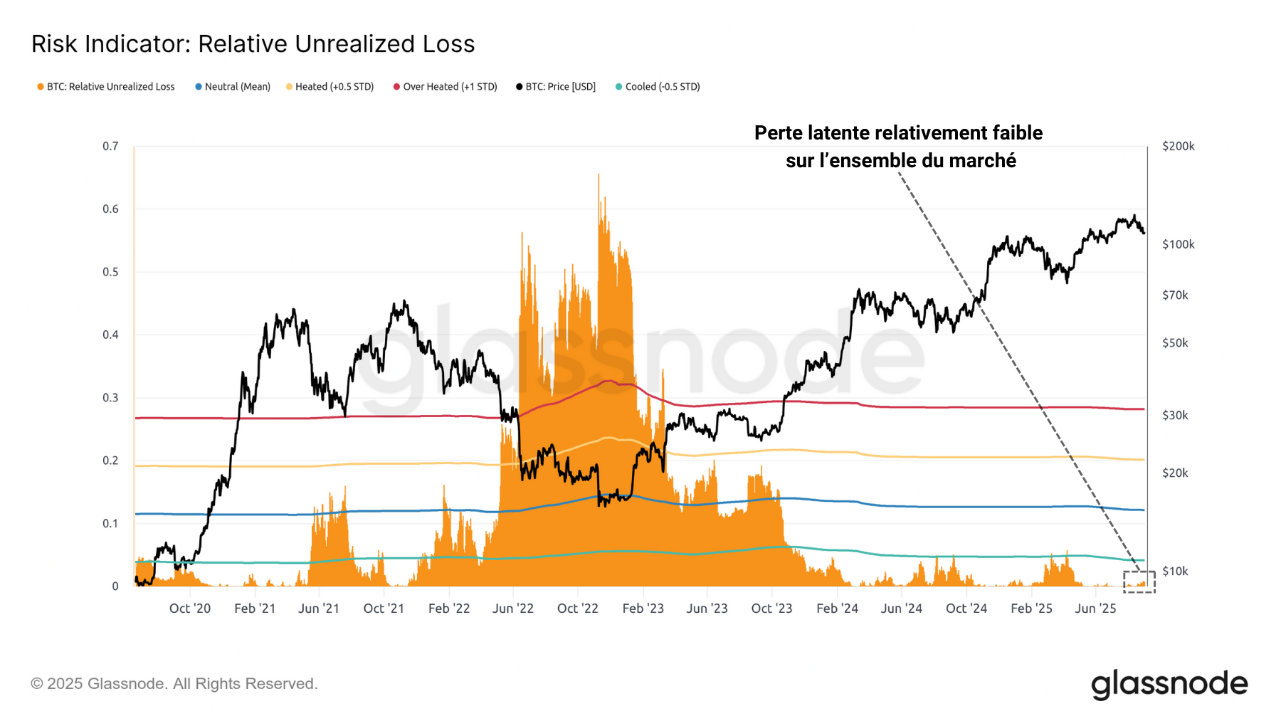 Reportée à l'ensemble du marché, la perte latente relative est encore plus basse. Aucun signe de douleur ou de risque majeur n'est à signaler pour le moment d'un point de vue général.