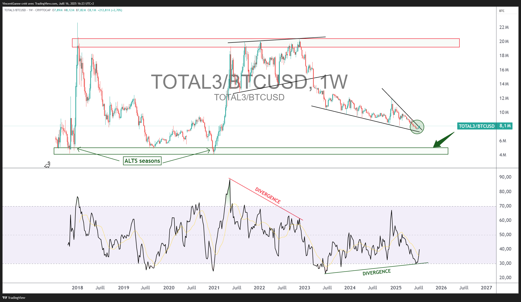 Le ratio TOTAL3/BTC : le thermomètre de la saison des altcoins est à suivre de très près