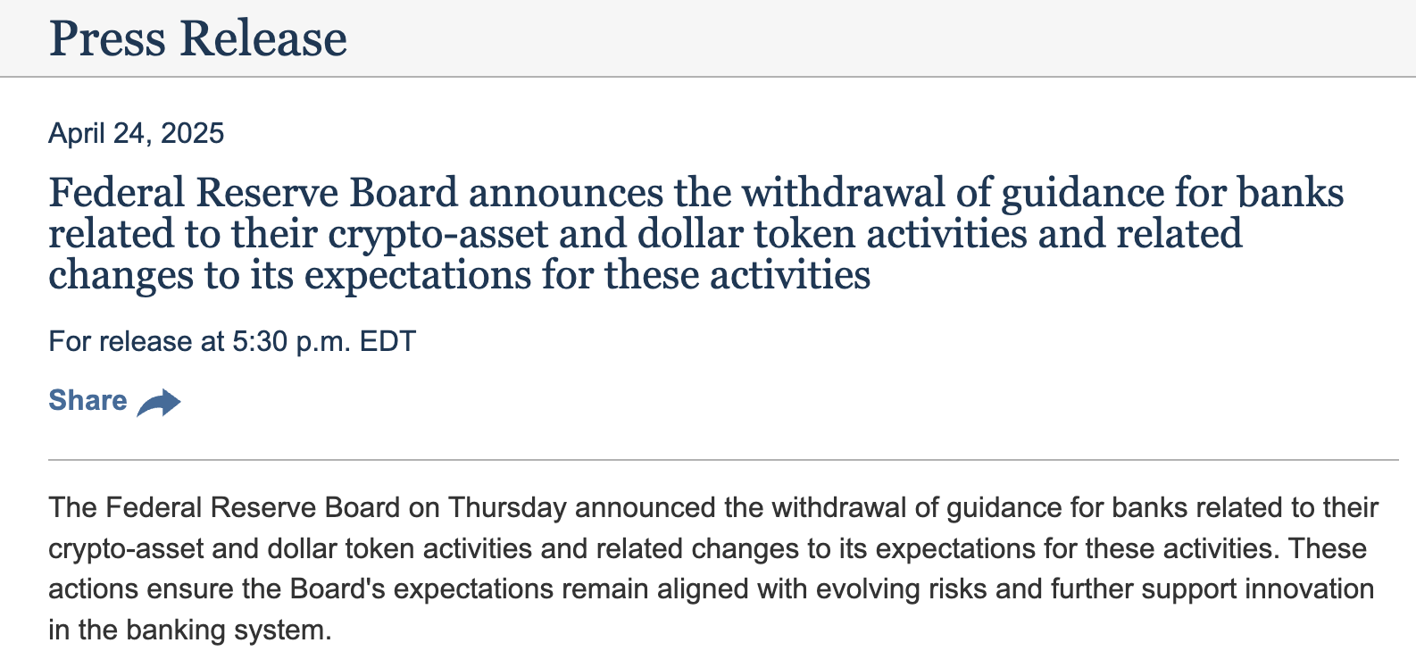 La Réserve fédérale (Fed) a annoncé un recul sur certaines directives encadrant les activités des banques liées aux cryptomonnaies. Ce changement s’inscrit dans une dynamique plus large d’ouverture du pays envers l’innovation financière, marquant un signal positif pour l’avenir des actifs numériques aux États-Unis.
