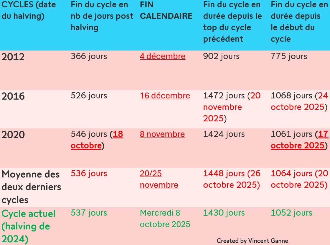 Ces deux projections indépendantes convergent vers la même période clé : la mi-octobre 2025, qui pourrait ainsi marquer la fin du cycle haussier actuel.