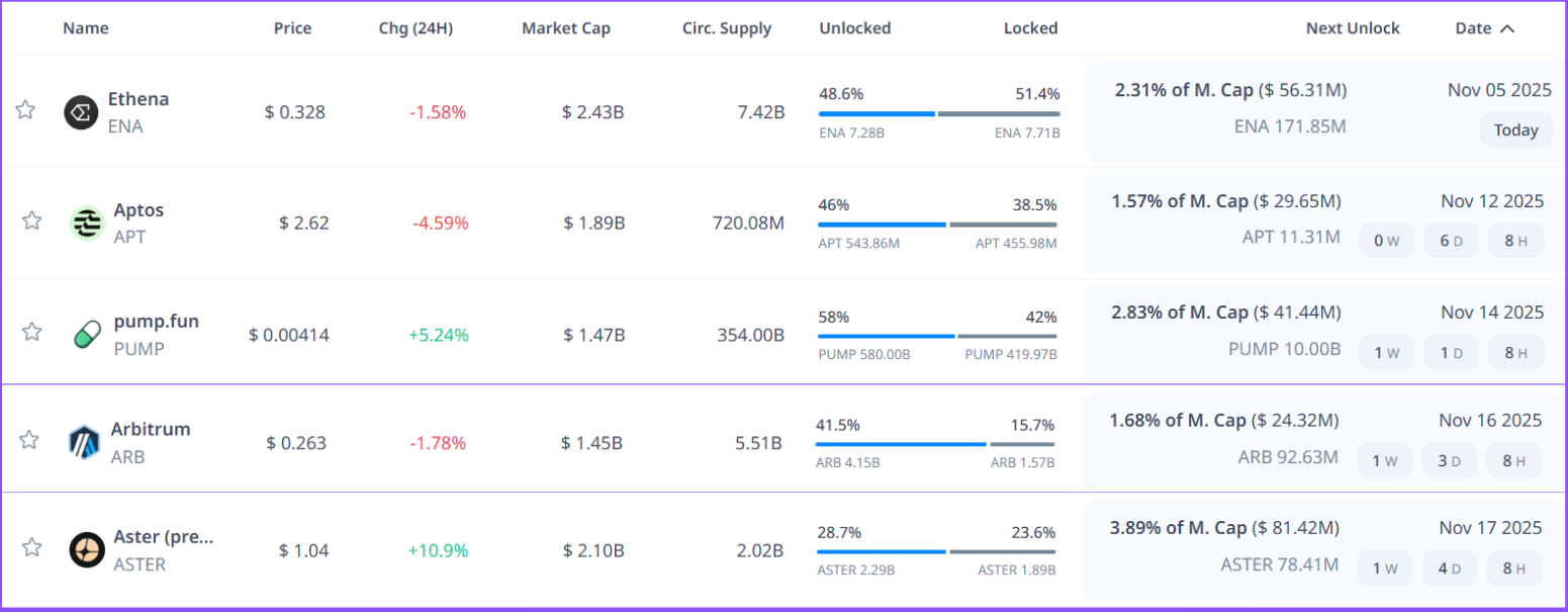 Les 5 unlocks de crypto à surveiller au mois de novembre