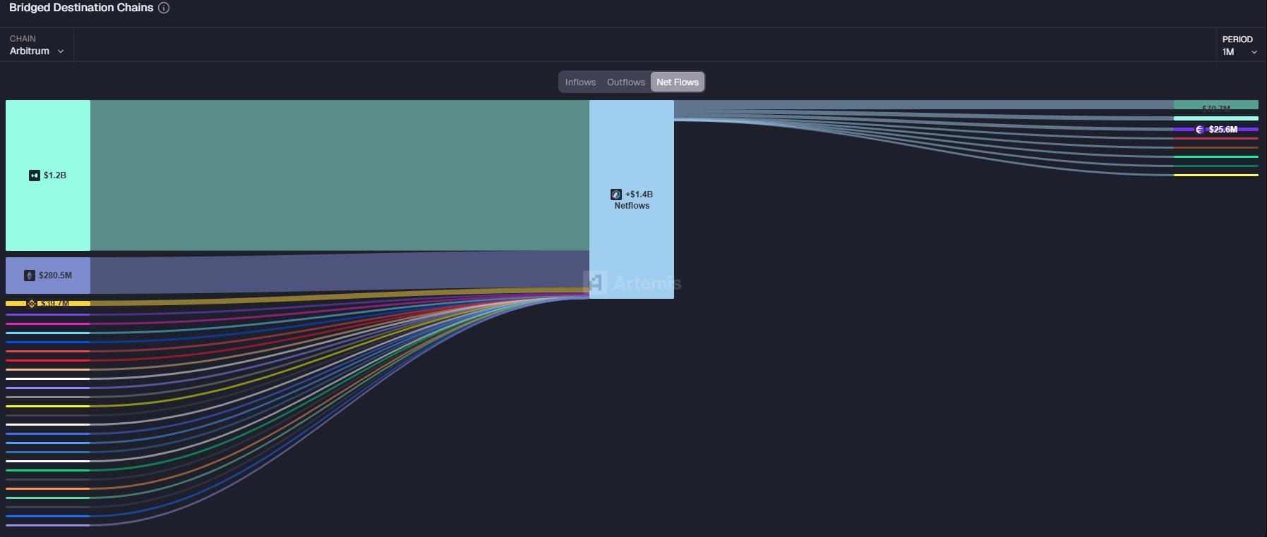 Au cours des 30 derniers jours, la blockchain Arbitrum a connu un important afflux de capitaux :