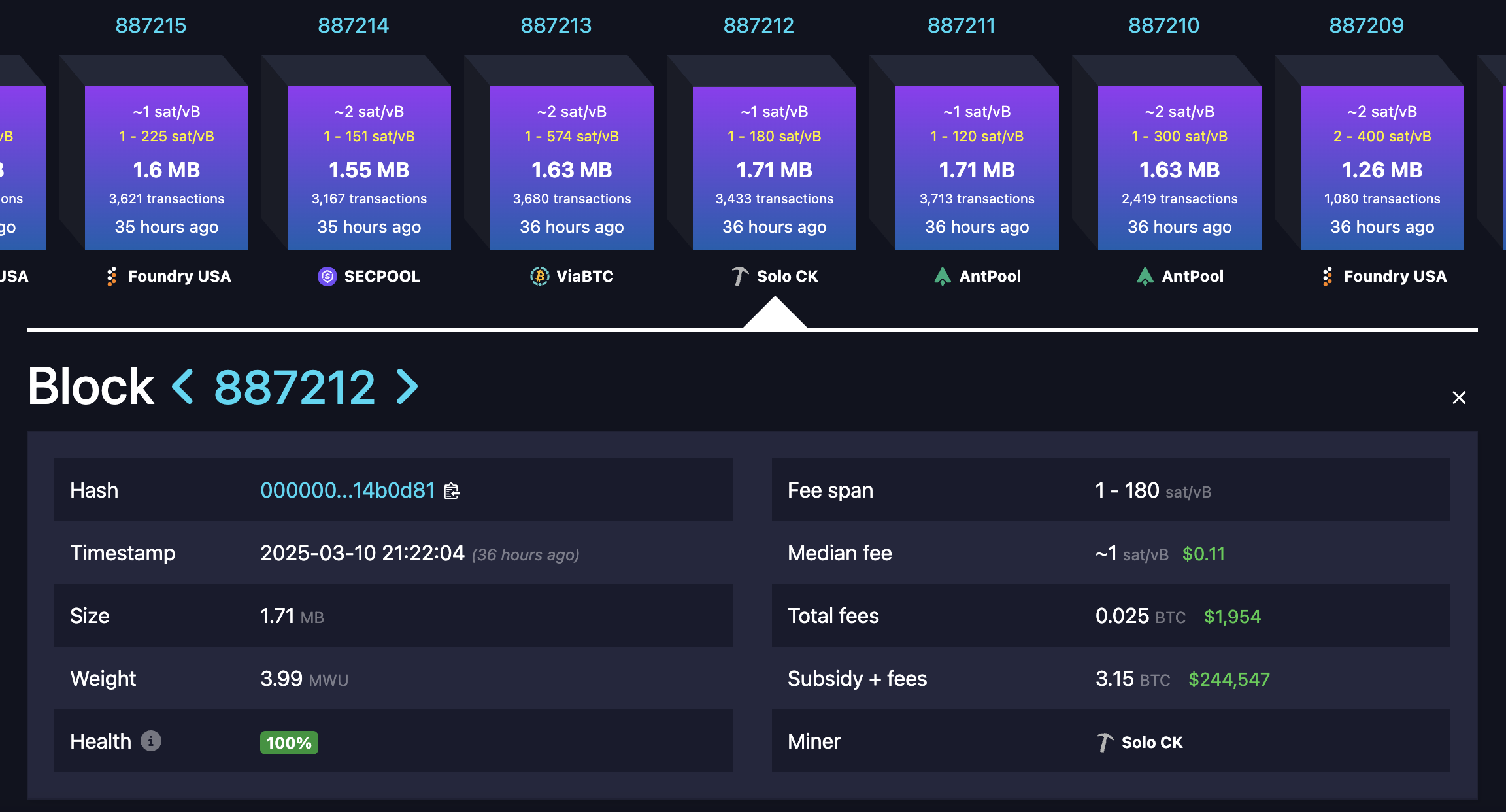 Ne vous méprenez pas : pour un individu, les chances de miner un bloc restent extrêmement faibles. Cependant, la communauté Bitaxe considère que ces mineurs individuels forment une sorte de pool décentralisée. Ainsi, lorsque l’un d’eux trouve un bloc, c’est une victoire collective, non pas récompensée de BTC, mais en contribution à la décentralisation du minage, renforçant ainsi la résilience du réseau.
