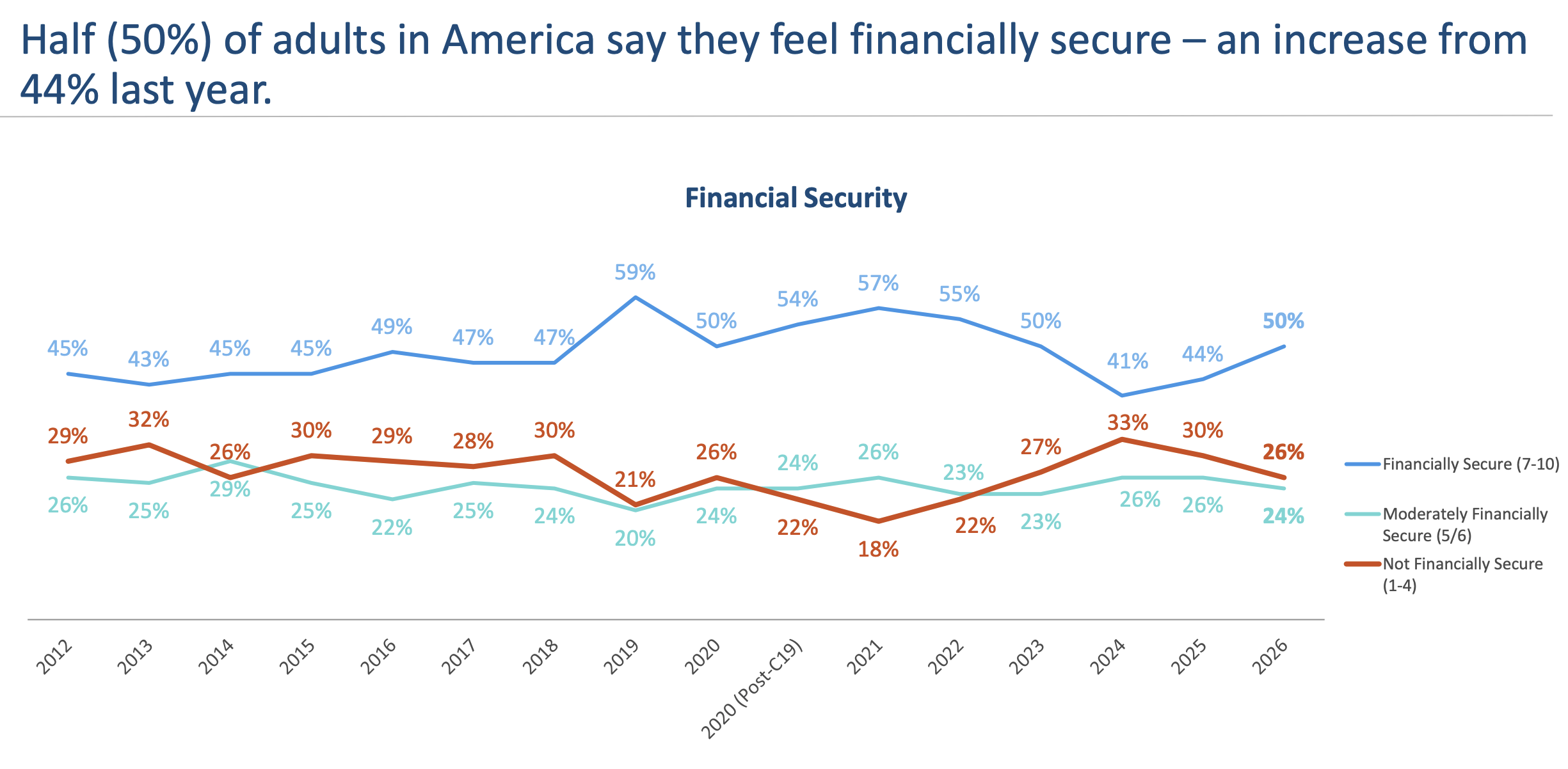 Une étude de Northwestern Mutual dévoile qu'au moins la moitié des adultes aux États-Unis se sentent à l'abri financièrement, contre 44 % en 2025. Pourtant, cette même étude démontre qu'une part importante de ces adultes, principalement chez les jeunes adultes, se tourne vers des actifs financiers spéculatifs par manque de connaissances.