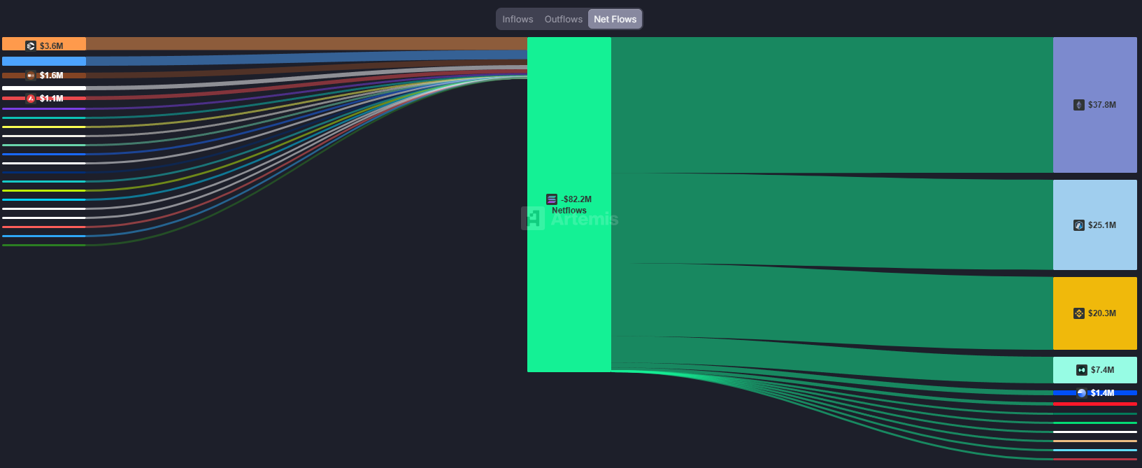 Graphique représentant les flux de capitaux sur la blockchain Solana