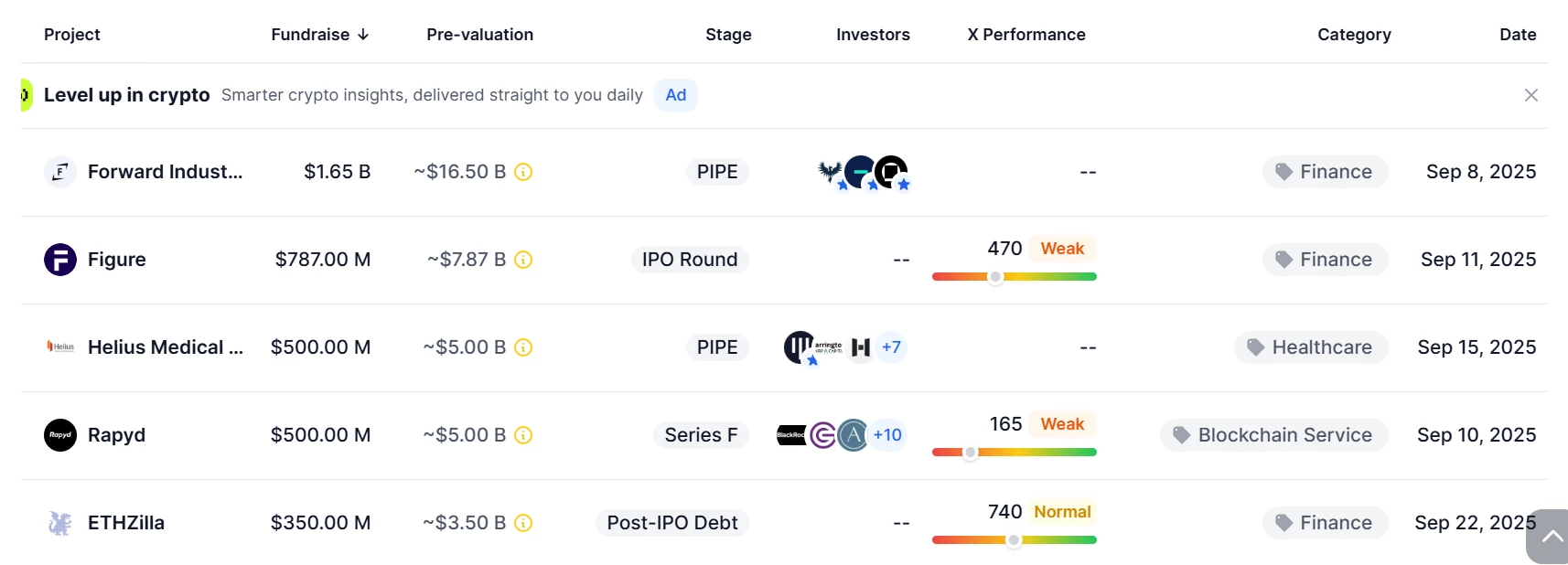 Chaque mois, de nombreuses entreprises, naissantes ou déjà bien établies de l'écosystème crypto, parviennent à attirer l'intérêt des investisseurs et à obtenir des financements. Le mois de septembre 2025 n'a pas dérogé à la règle, puisque plus de 5,62 milliards ont été levés par des entreprises à fort potentiel, dont plus de 3,78 milliards par seulement 5 d'entre elles.