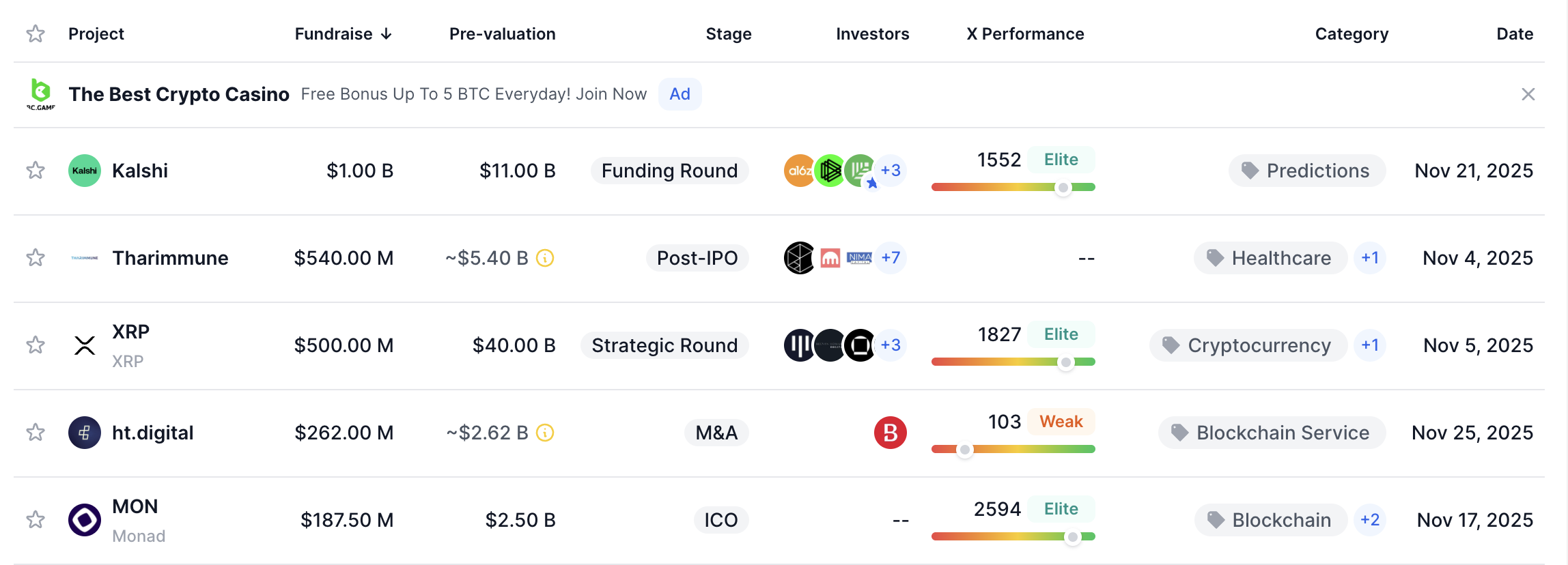 Top des levées de fonds crypto en novembre 2025 - Les prediction markets ont la cote