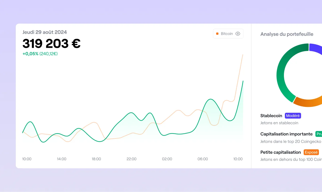 Les performances de votre portefeuille peuvent également être comparées à des benchmarks comme le Bitcoin, l’Ethereum, le BNB, le S&P 500, le CAC 40 ou encore l’or, afin de mieux situer vos rendements.